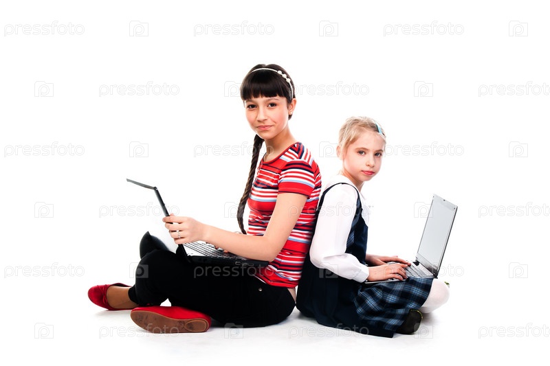 Две симпатичные девочки с ноутбуками