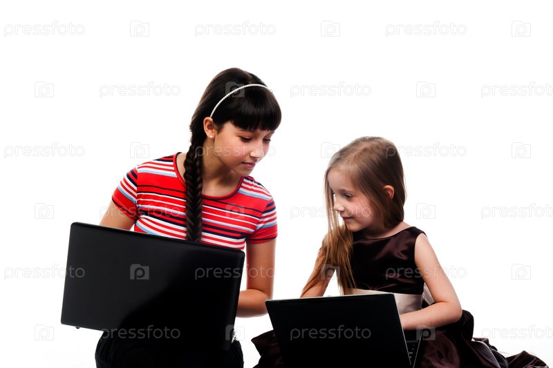 Две симпатичные девочки с ноутбуками