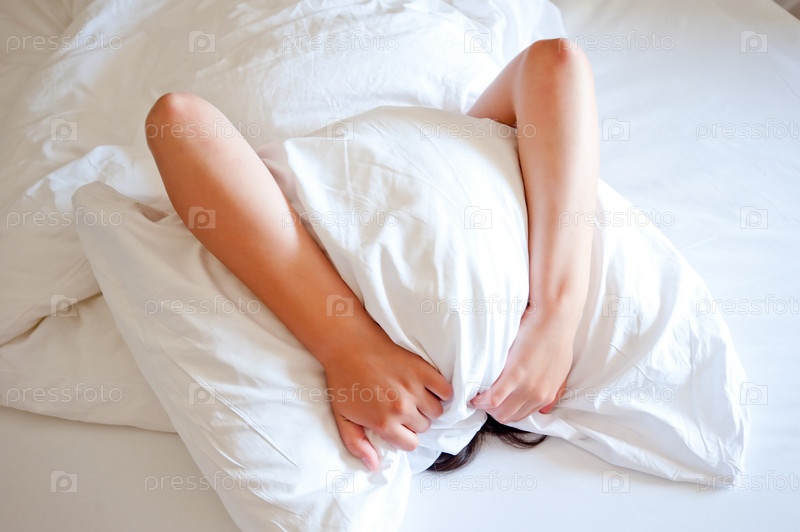Женщина с подушкой на голове