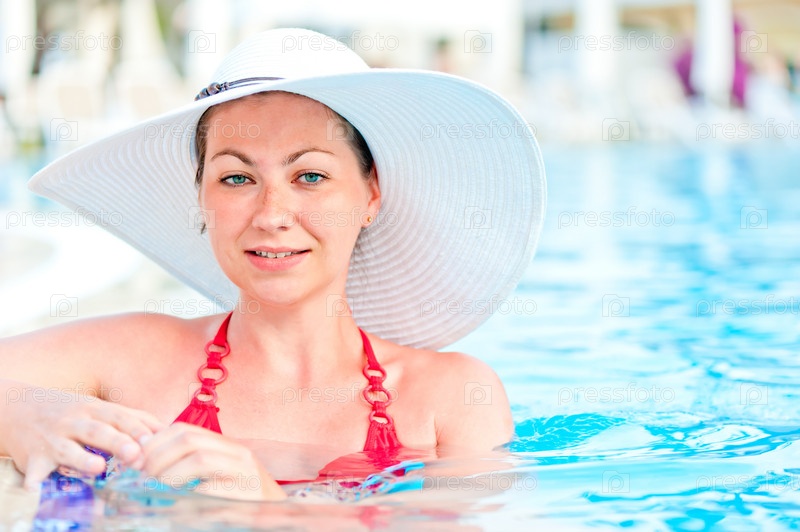 Женщина в голубом бассейне