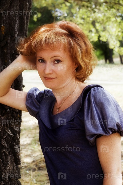 Рыжеволосая женщина в парке