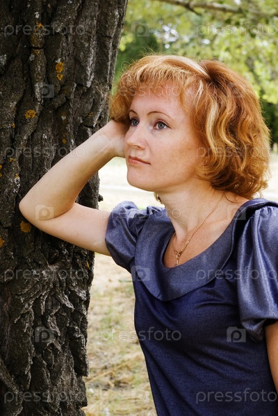 Рыжеволосая женщина в парке