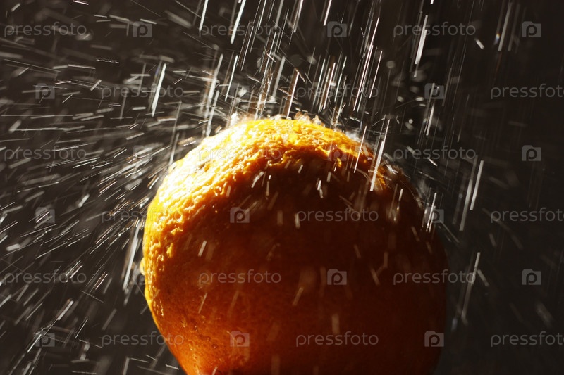 Апельсин под струями воды