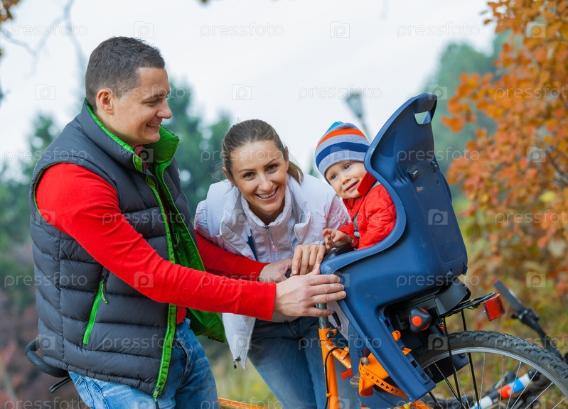 Семья с ребенком на велосипедах