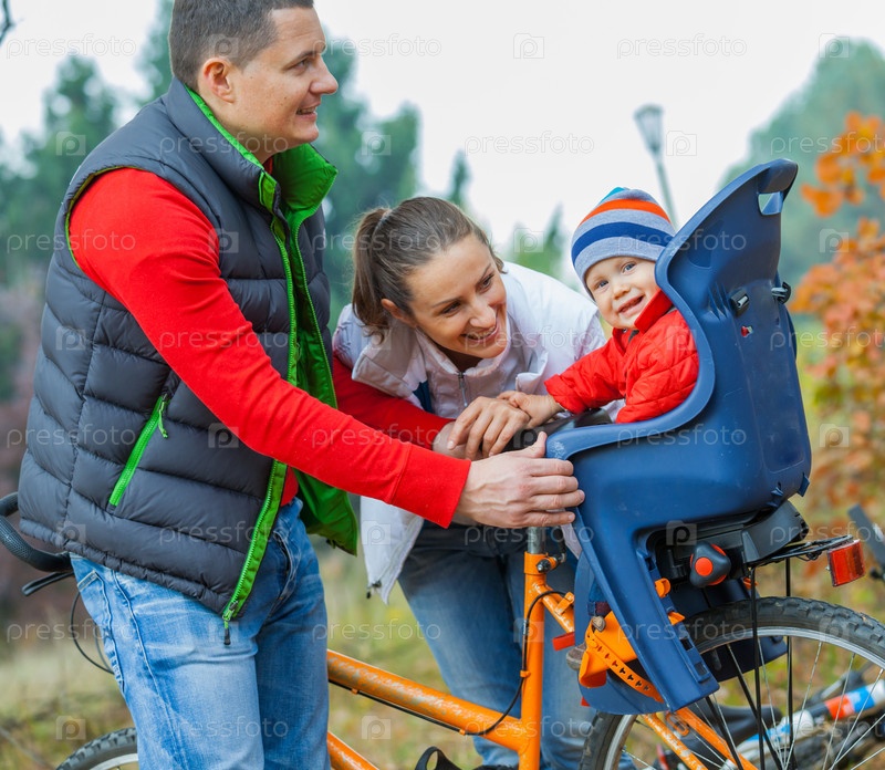 Семья с ребенком на велосипедах