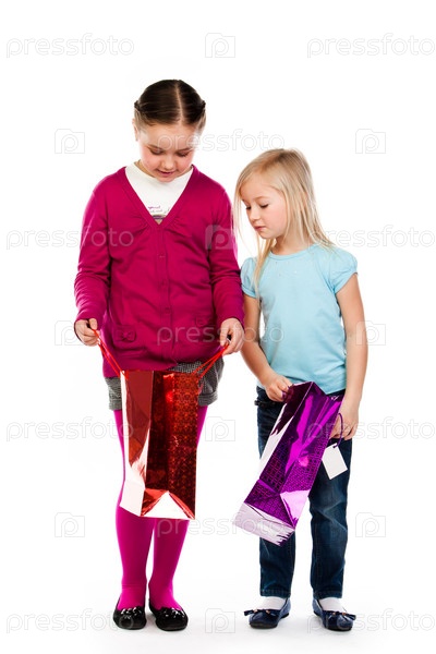 Две маленькие красивые девочки с покупками