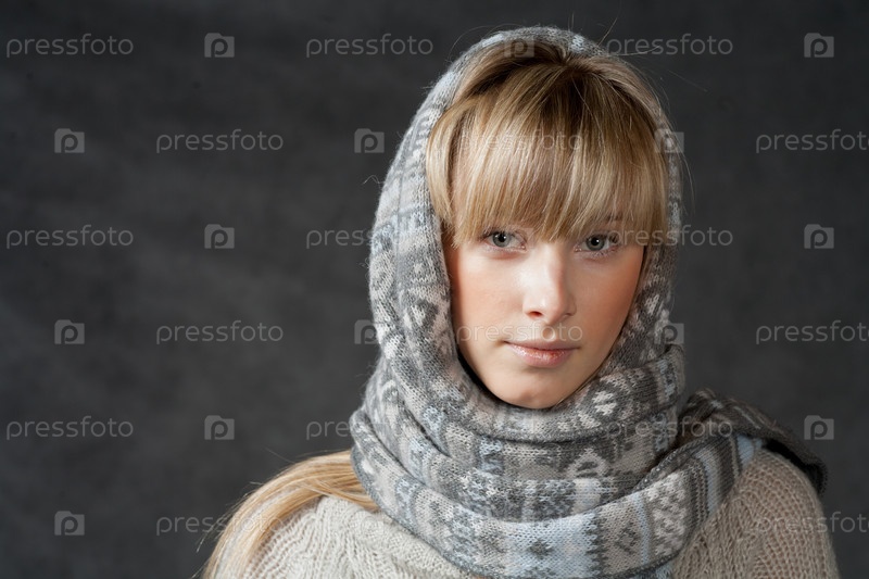 Красивая девушка в шарфе и сером свитере