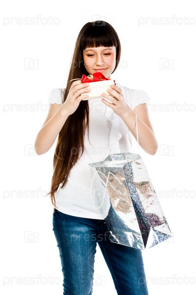Маленькая и красивая девочка с подарком