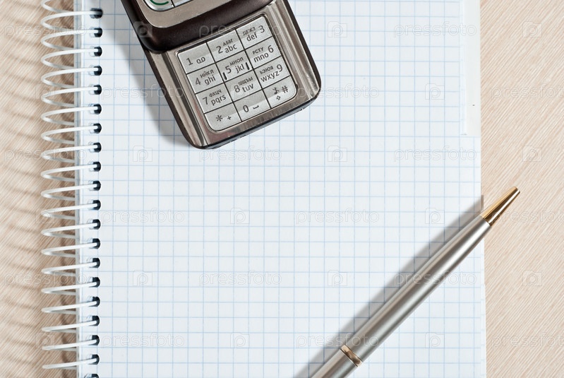 Мобильный телефон и блокнот на столе