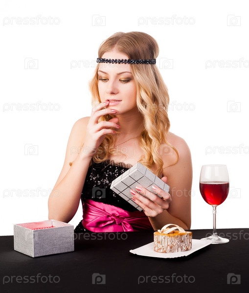 Красивая молодая женщина получает подарок