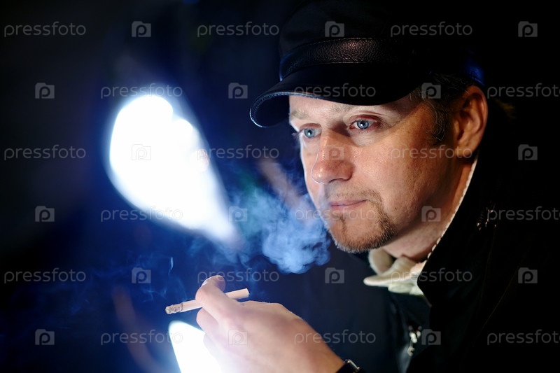 Портрет мужчины с сигаретой в свете фар