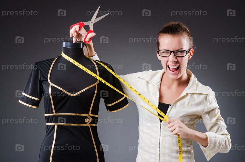 Женщина-портной работает над одеждой