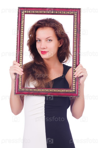 Женщина с рамой на белом фоне