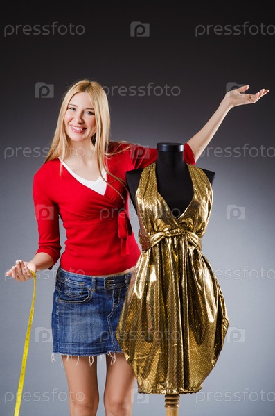 Женщина-портной работает над одеждой