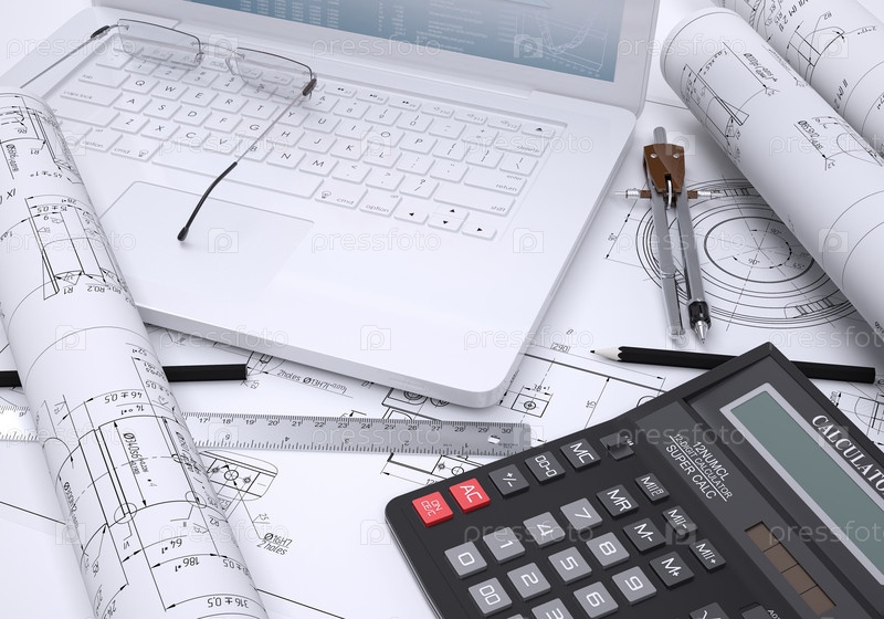 Калькулятор, документы и ноутбук