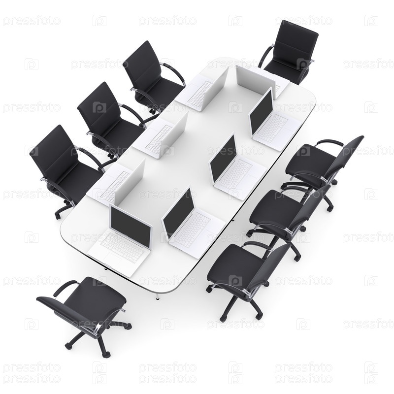 Ноутбуки на круглом столе и стулья