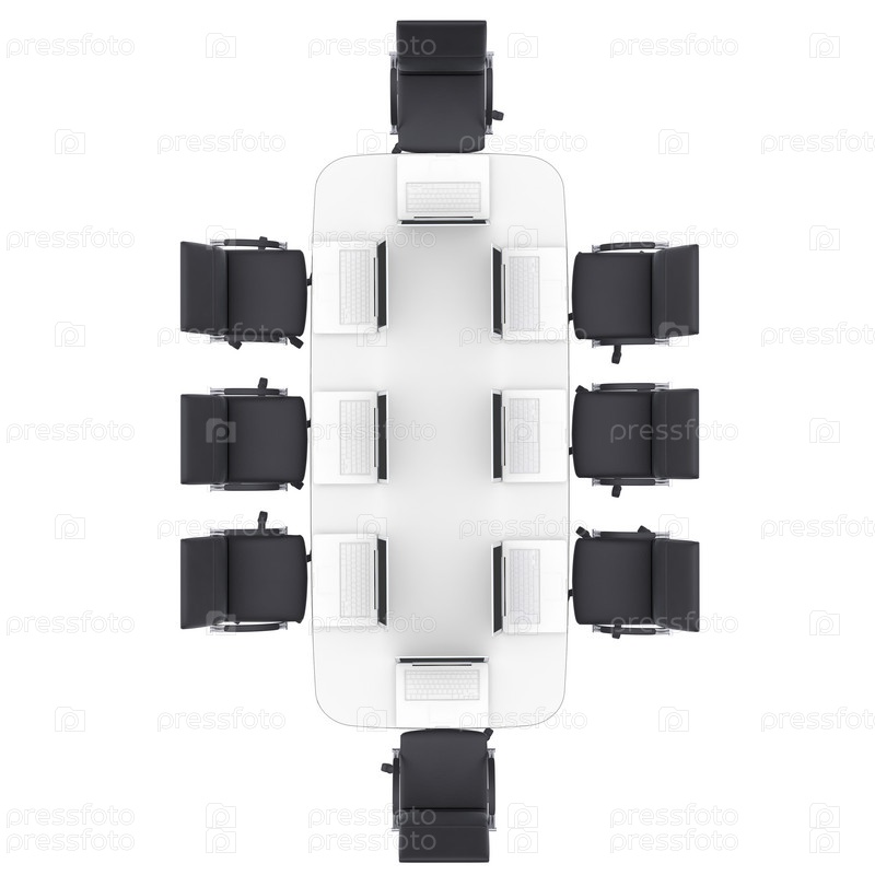 Ноутбуки на круглом столе и стулья