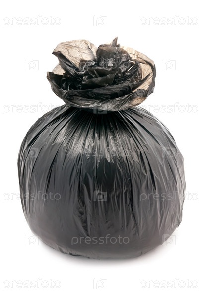Черный завязанный мешок для мусора