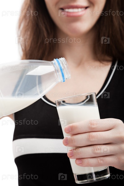 Женщина наливает в стакан молоко