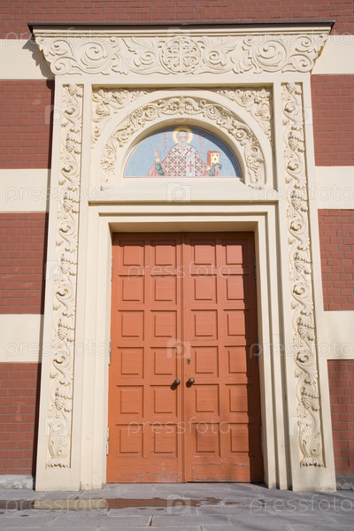 Мозаичный образ Николая Угодника над южным входом в церковь иконы Богоматери "Отрада или Утешение". Москва