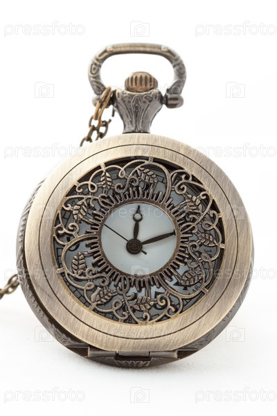 Старинные карманные часы на белом фоне