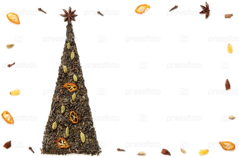 Новогодняя (Рождественская) открытка, сделанная из чая с приправами и пряностями