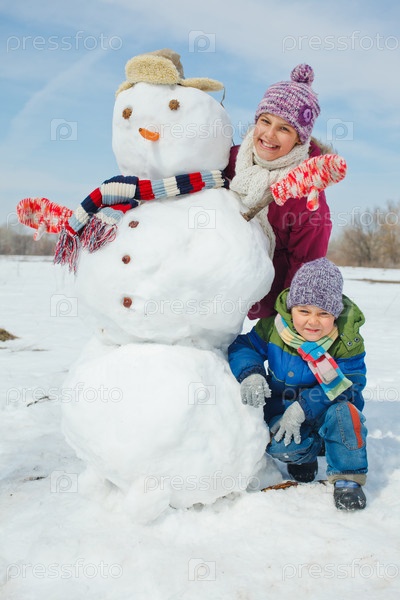 Дети делают снеговика