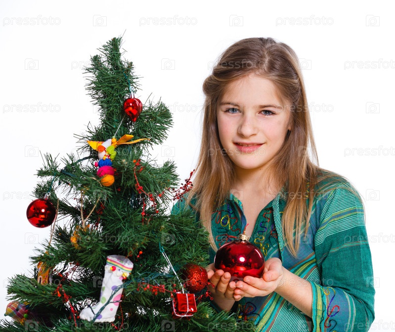 Девочка украшает елку