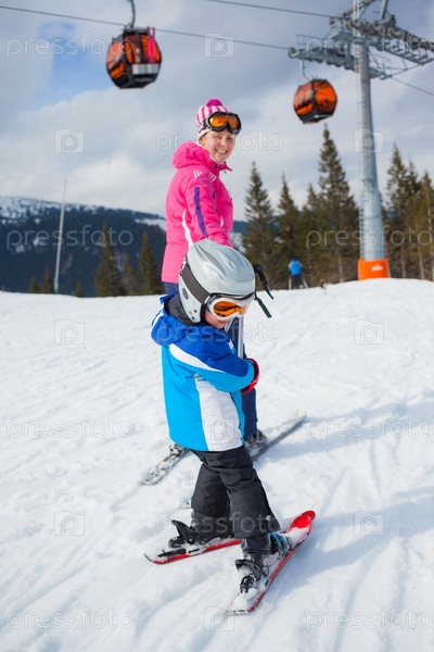 Лыжный спорт, зима, семья