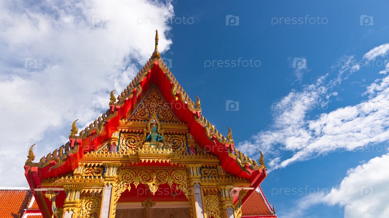 Резная золотистая крыша буддийского храма, Ват Чалонг, Таиланд