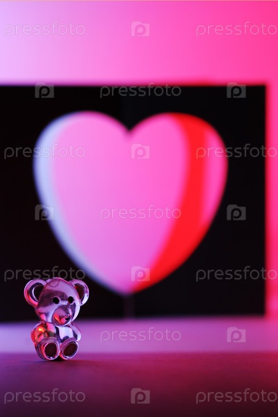 Медведь на фоне розового сердца. Концепция любви