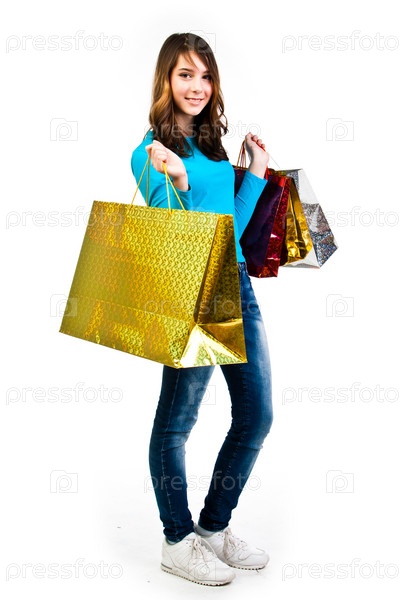 Молодая и красивая девушка с покупками