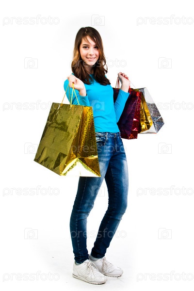 Молодая и красивая девушка с покупками