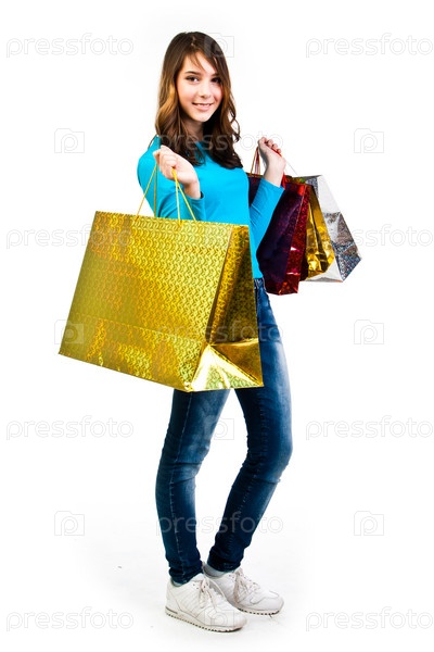 Молодая и красивая девушка с покупками