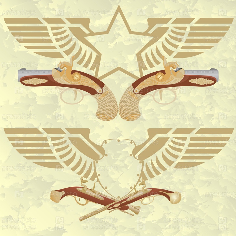 Значки с крыльями и старинным оружием