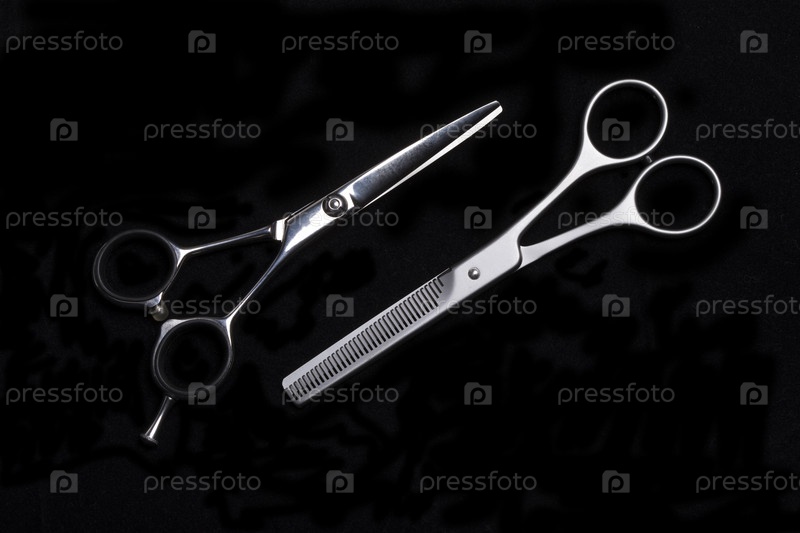 Парикмахерские ножницы на черном фоне