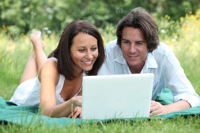 Пара, лежащая на траве