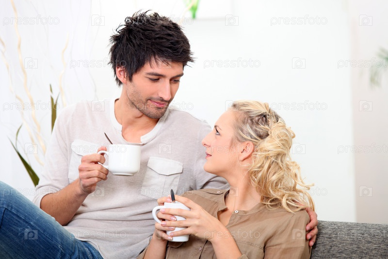 Пара вместе пьет утренний кофе