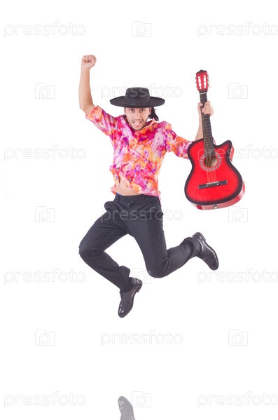 Мужчина с гитарой, изолированный на белом фоне
