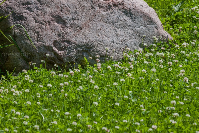 Гранитный камень на поле клевера