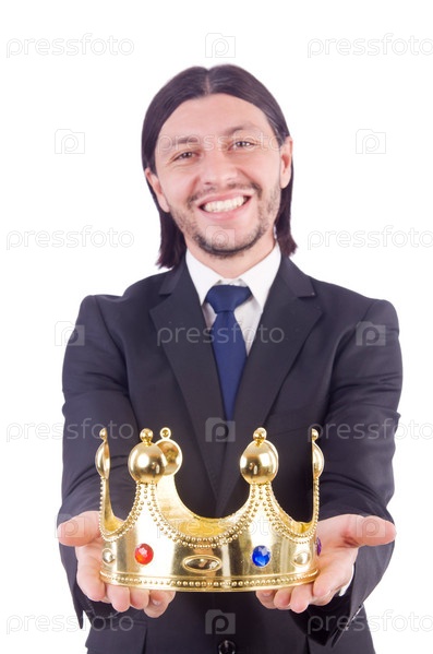 Бизнесмен с короной, изолированный на белом фоне