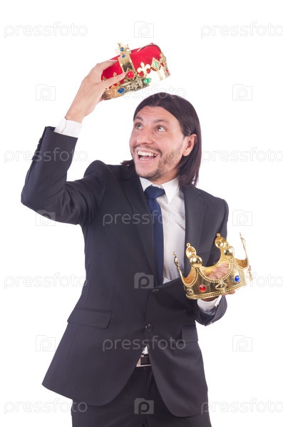 Бизнесмен с короной, изолированный на белом фоне