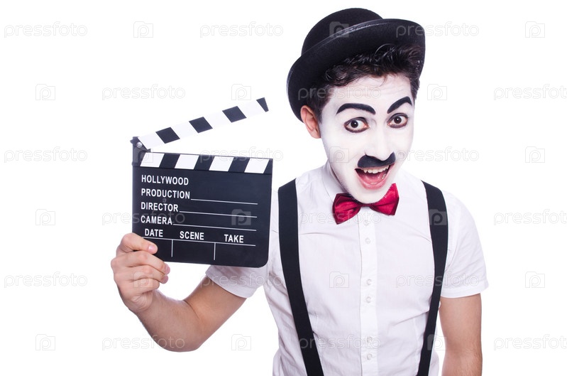 Человек с хлопушкой, изолированный на белом фоне