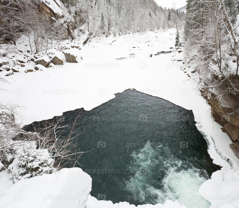 Зимний пейзаж горной реки, Украина