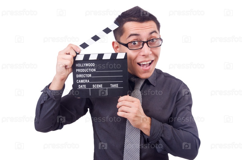 Забавный человек с хлопушкой