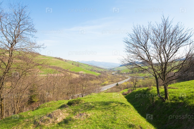 Пейзаж весенних полей и гор