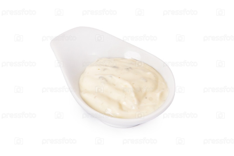 Сливочный соус в тарелке, изолировано
