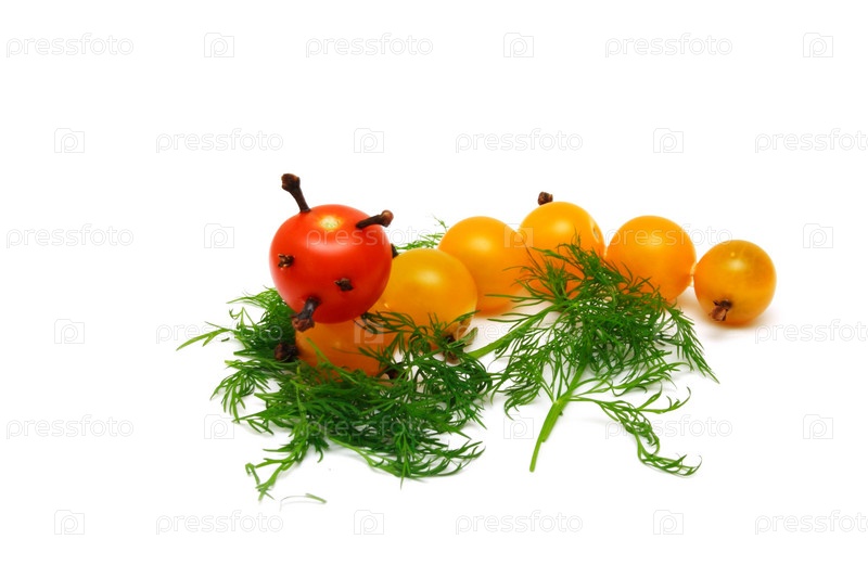 Гусеница из желтых томатов на белом фоне
