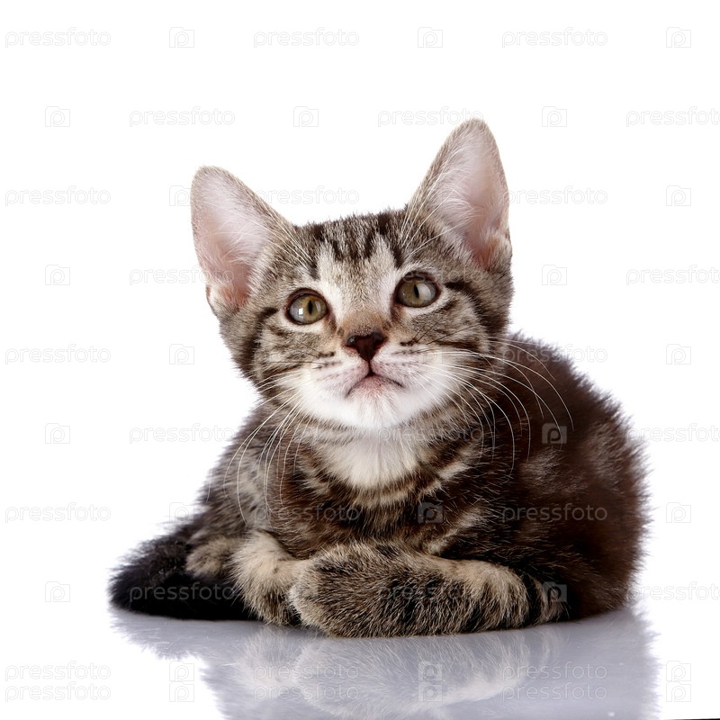 Разноцветный котенок на белом фоне