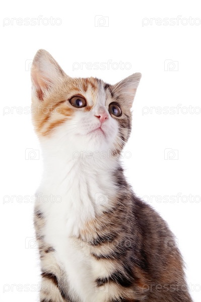 Разноцветный котенок на белом фоне